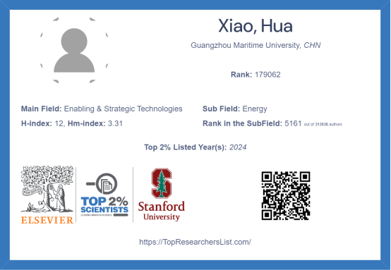 近期,斯坦福大学携手爱思唯尔(Elsevier)联合发布了2024年度“全球前2%顶尖科学家榜单” https://elsevier.digitalcommonsdata.com/datasets/btchxktzyw/7。广州航海学院海洋装备工程学院肖华博士荣登该名录中的“年度科学影响力”榜单,标志着我院35岁以下青年学者首次跻身此荣誉之列。