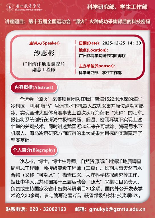 上一条:学术讲座预告:陈焱琨《北极科考探秘:利用声学手段“看见”北极冰下世界》 下一条:聚力提质启新程-《广州航海学院学报》召开办刊质量提升专题研讨会